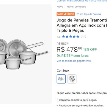 Jogo de Panelas Tramontina Antiaderente 10 peças